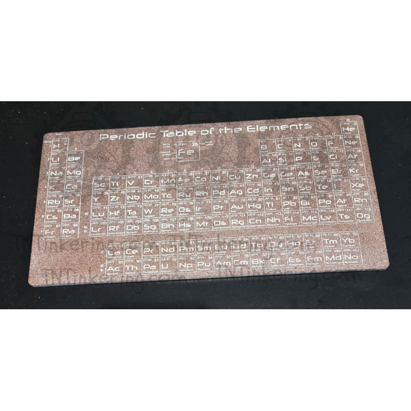 This beautifully crafted wooden plaque features a detailed engraving of the **Periodic Table of the Elements**, combining science and craftsmanship in a striking display piece. Each element is neatly etched with its symbol, atomic number, and atomic weight, arranged in the familiar grid that students and science enthusiasts recognize instantly. The natural wood grain adds warmth and texture, making it both educational and decorative. Perfect for classrooms, labs, or home offices, this fun and tactile periodic table brings chemistry to life — a wonderful way to celebrate curiosity and the beauty of scientific discovery. The plaque measures 6.25" x 11.5" and is available in natural brown with white etched inlay or white with dark etching.